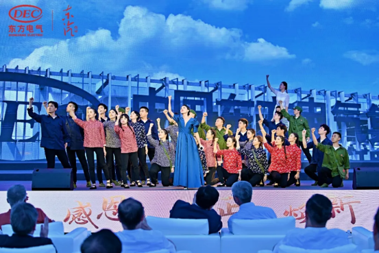 ▲情景展演《脊梁之上》藝術(shù)地再現(xiàn)了東方電氣從艱苦卓絕的三線創(chuàng)業(yè),到經(jīng)歷磨難后的涅槃重生,再到新時代勇攀高峰、服務(wù)國家戰(zhàn)略的壯麗畫卷。